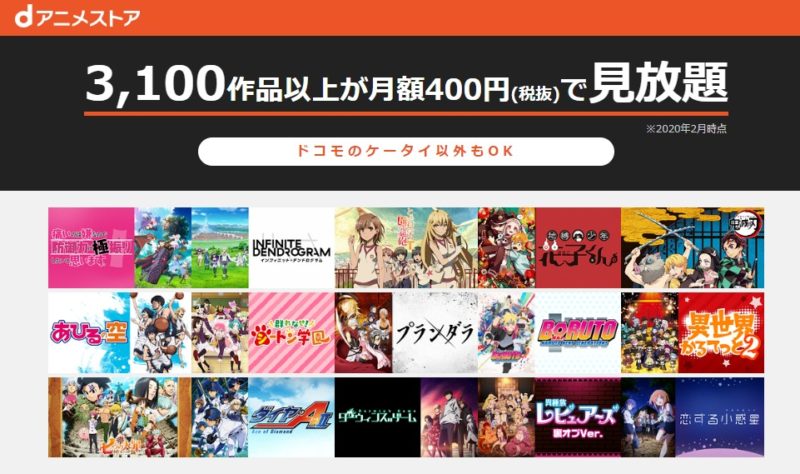 月額400円で約3,100作品以上のアニメが見放題の動画配信サービスです。
